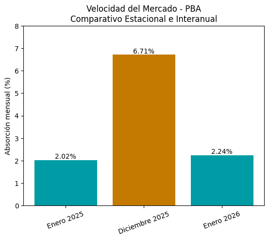 📉 Oferta y velocidad del mercado, absorción mensual